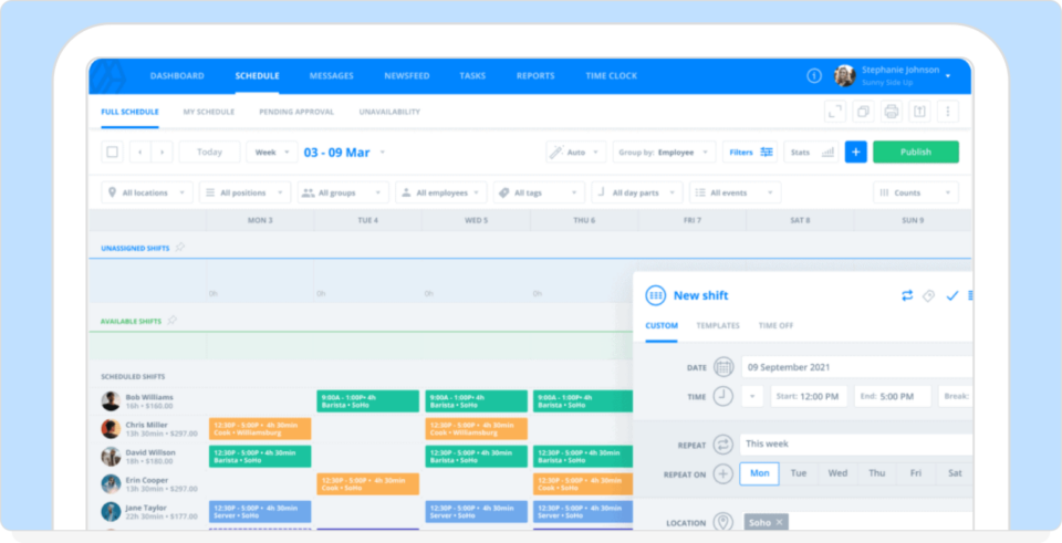 When I Work focuses on how quickly managers can build and adjust schedules during a normal workweek. Core features include: