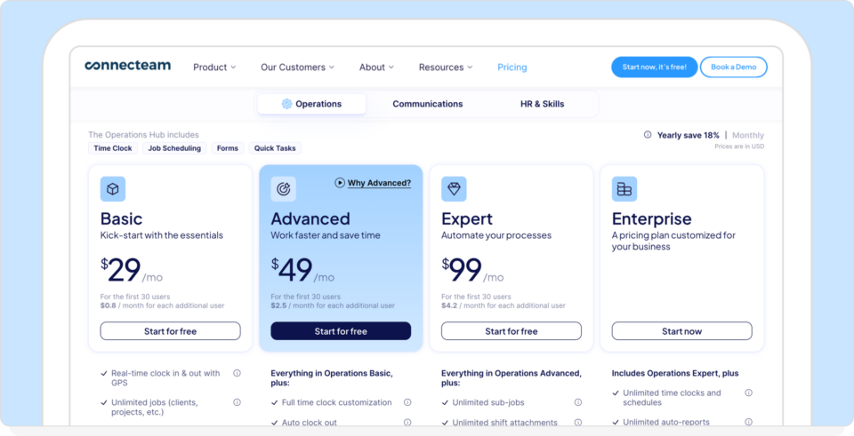 - Connecteam pricing allows teams to activate different product areas depending on which tools they want to use.