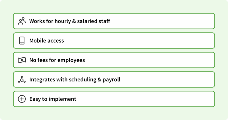 It’s also important to make sure you find an on-demand pay provider that’s free for your employees to use. Otherwise, you aren’t really helping them advance their financial wellness if they have to pay to access their wages sooner.